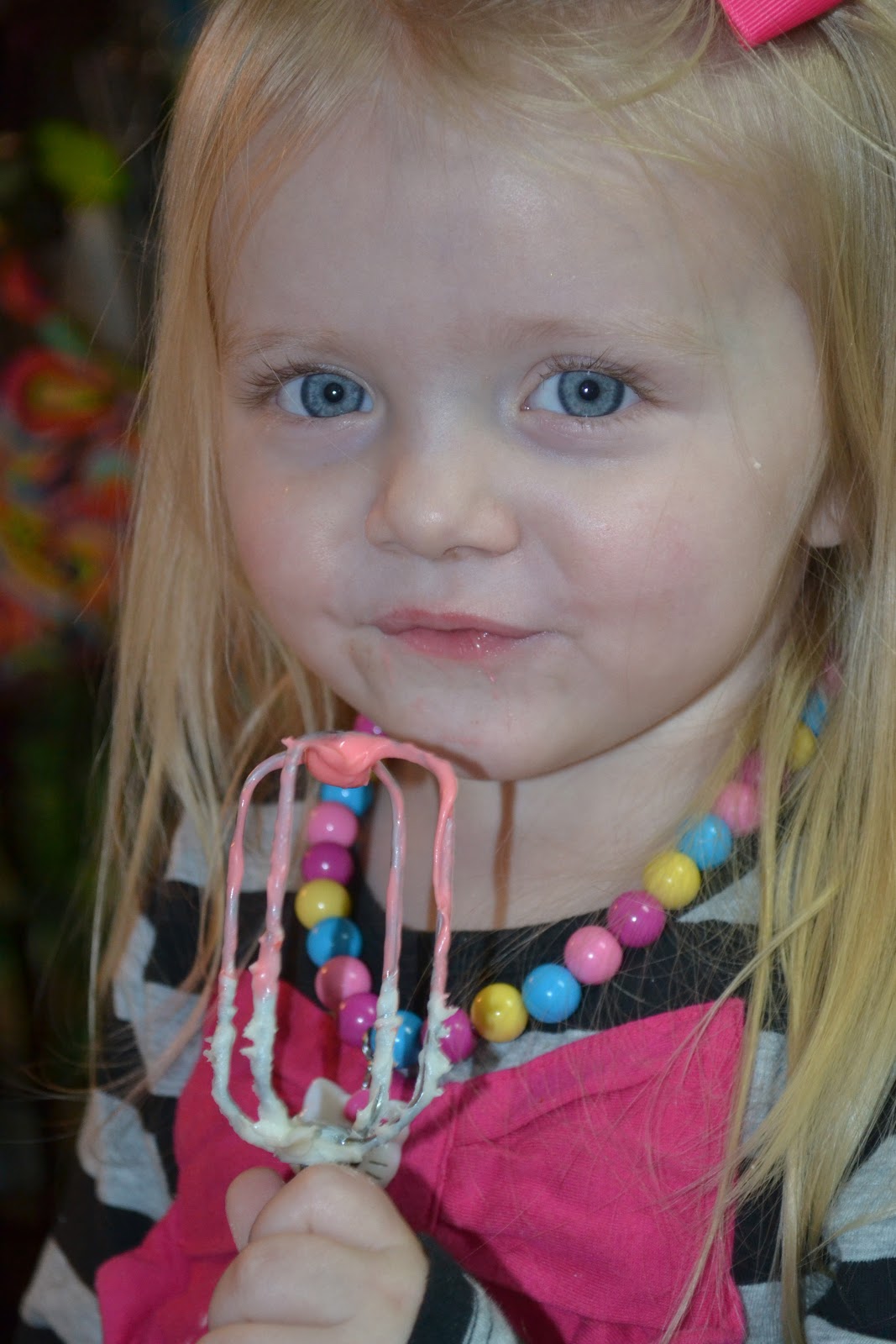 | Licking the beaters after frosting a cake for Jesus's birthday! |